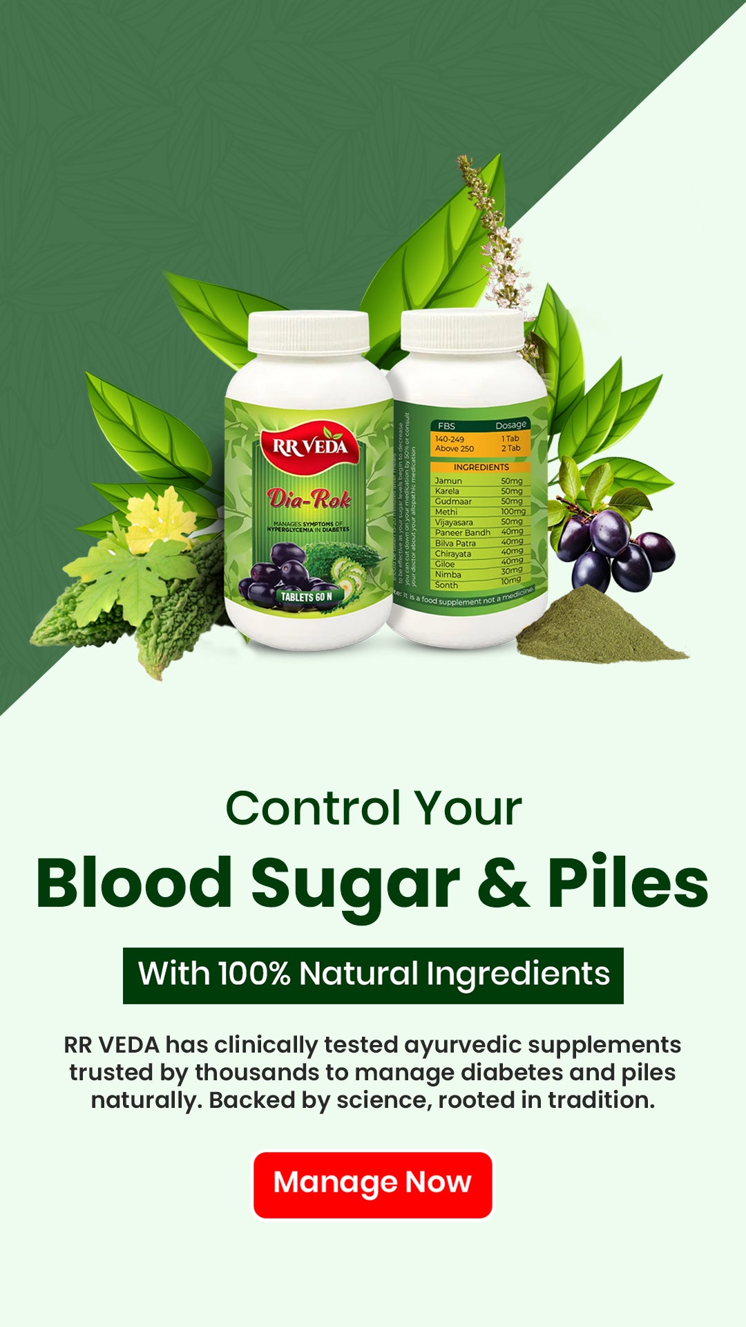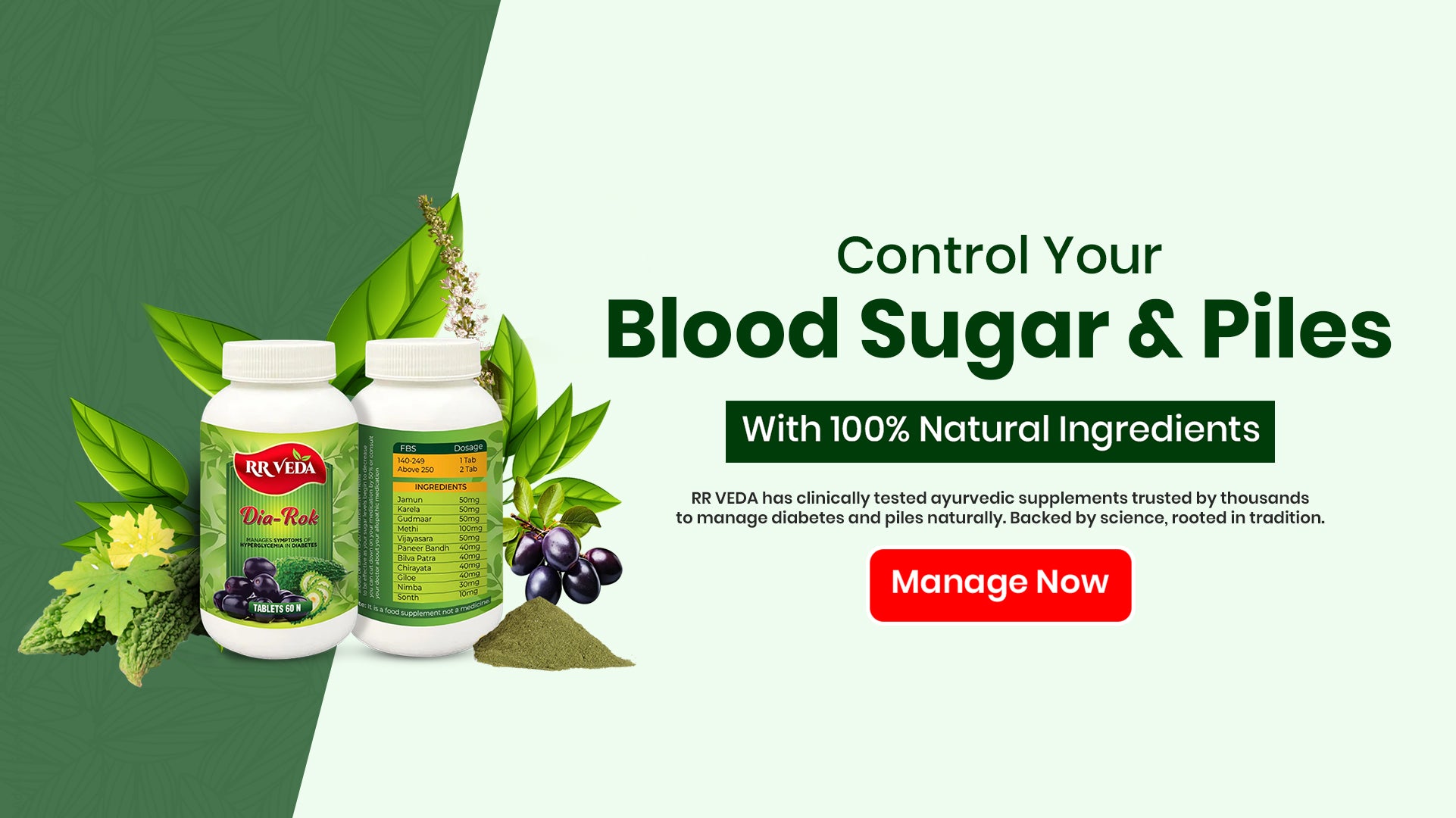 At RR Veda, we believe in the power of Ayurveda to transform lives. Our natural ingredients for diabetes and piles are crafted with pure, potent herbs and backed by ISO, GMP, and FSSAI certifications, ensuring safe and effective care for your wellness journey.